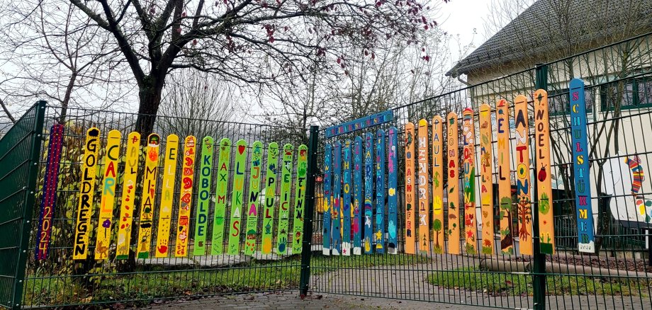 Die Pforte der Kindertagesstätte Schatzkiste hat einen neuen Look bekommen, in Form von bunten und individuell liebevoll gestalteten Zaunlatten. Sie waren das Abschiedsgeschenk der Schulstürmer 2024. Jetzt begrüßen die kleinen Kunstwerke alle Kinder und Besucher der Schatzkiste und erinnern an den kreativen ehemaligen Jahrgang.