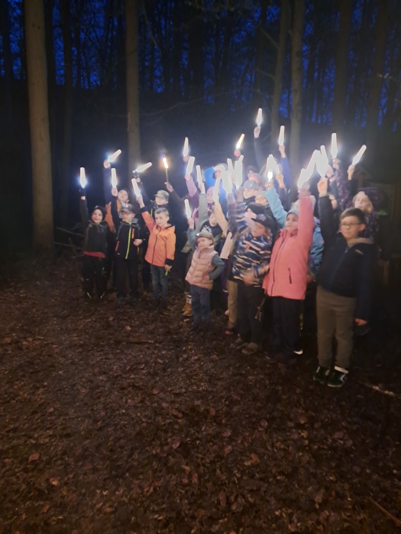Ein besonderes Highlight war die Fackelwanderung, organisiert und durchgeführt vom Verein Wasser von Brachttal. Gestartet am alten Konsum in Neuenschmidten, führte die Wanderung die Kinder direkt in den Wald, wo Heike Brandt durch feenhafte Geschichten die Entdeckungslust der Kinder weckte. Während der Wanderung stießen die kleinen Entdecker sogar auf eine verlorene Axt, die sie sicherheitshalber mitnahmen. Doch die Überraschung folgte im schönen Steinbruch von Neuenschmidten, als plötzlich ein geheimnisvoller Waldschrat auftauchte. Es stellte sich heraus, dass er seine Axt im Wald verloren hatte, und als Dank für ihre Ehrlichkeit belohnte er die Kinder mit glitzernden Edelsteinen.