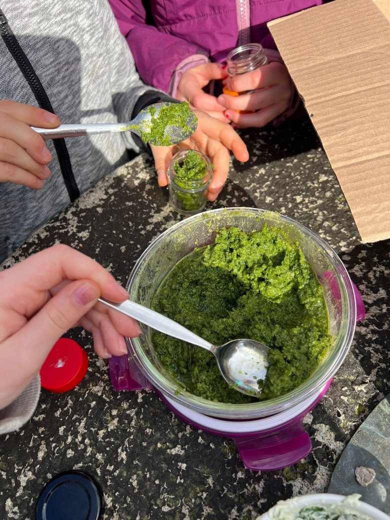Die Kräuterwanderungen mit der Kräuterhexe Sandra Östreich vom Obst- und Gartenbauverein Brachttal erwiesen sich als echter Renner. Bei einem gemütlichen Beisammensein mit Kräuterquark und Bärlauchbutter auf frisch gebackenem Brot lernten die Kinder nicht nur verschiedene Kräuter kennen, sondern durften auch ihr eigenes Kräutersalz herstellen. Dabei entdeckten sie, dass viele der Blumen, die auf den Wiesen zu finden sind, nicht nur hübsch anzusehen sind, sondern auch essbar und gesund.