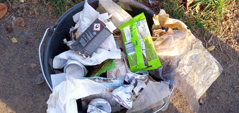 Der Müll soll in die grünen Mülleimer, die an Straßen und Fahrradwegen stehen. Wenn keiner da ist, kann man den Müll gut in eine Tüte oder Jackentasche stecken, bis man einen sieht.