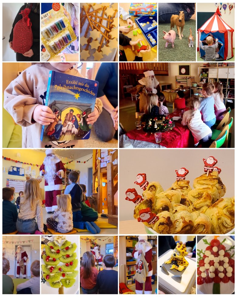 So ging der Tag nach dem reichhaltigen und leckeren Frühstück spannend weiter. Für die Kinder der Kita Regenbogen gab es einen Film mit einer Nikolausgeschichte im Turnraum. Der lenkte die Kinder ab, während der heilige Mann heimlich seine Gaben vor die Tür legte. Die Dachzwerge haben ihn am Fenster gesehen. Den Grashüpfern hatte er sein Geschenk heimlich im Wald versteckt, doch die Kinder sahen ihn zwischen den Bäumen. Die Kindergartenkinder in der Schatzkiste trafen ihn persönlich, als er die schweren Geschenksäcke herbeischleppte. Es wurden Weihnachtslieder gesungen und Gedichte gesprochen. Der Zauber des Tages war noch bis in den Nachmittag zu spüren, spätestens als begeisterte Kinder ihren Eltern beim Abholen von den Erlebnissen des Vormittags berichteten. Danke lieber Nikolaus! An den echten und an alle seine Helfer!