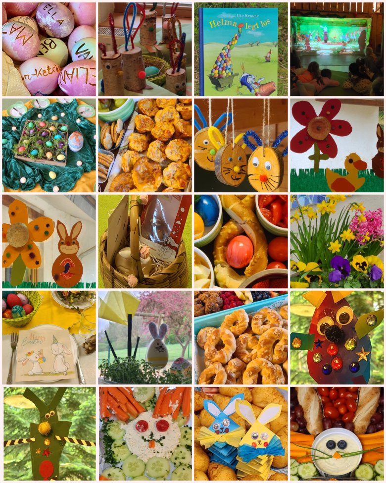 Für das Osterfest im Kindergarten haben die Kinder mit ihren Erzieherinnen liebevoll alles vorbereitet. Nester wurden gebaut und Osterschmuck gebastelt. Überall stehen Frühlingssträuße und in allen Gruppen gibt es ein leckeres Frühstücksbuffet. Hier haben viele Eltern wieder mit leckeren und frischen Beiträgen unterstützt. Teils frühstückten die Kinder in den Gruppen, teils picknickten sie draußen. Für die Kinder in der Kita Regenbogen wartete danach die Ostergeschichte um die Abenteuer der Henne Helma. Die Piraten spielten die Abenteuer von Stups, dem Osterhasen nach. Die Kobolde sahen „Die Hasenschule“ als Film. Bei den Grashüpfern brachte der Osterhase die Zutaten für ein Nudelfrühstück, das Kinder und Erzieherinnen zusammen kochten und sich schmecken ließen.