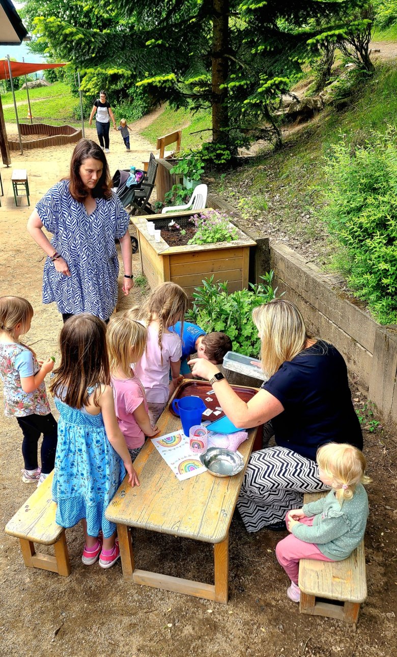 In der Pandemiezeit war die Idee entstanden, den Tag der Nachbarschaft zu begehen. Man hatte das Bedürfnis, in Kontakt zu sein, vor allem auch mit den Menschen „direkt nebenan“. Damals initiierte die Kindertagesstätte Regenbogen erstmals die Pflanzentauschbörse vor dem Haus. Nachbarn, Eltern und Erzieherinnen konnten Gemüsepflänzchen für den Garten oder Ableger von beliebten Zimmerpflanzen mitbringen und sich gleichzeitig an den von anderen mitgebrachten Schätzen bedienen. Die Idee stieß auf Freude bei den Familien. Viele ziehen junge Pflänzchen oder Gartenpflanzen vermehren sich, werden stattlich und vielversprechend und der Platz im eigenen Garten reicht nicht aus. Die Tauschmöglichkeit erhöht die Vielfalt im eigenen Garten. Für Kinder ist es besonders schön, das Wachsen der Pflanzen in einer Saison mitzubekommen und sich auf die Ernte zu freuen. Im Lockdown wurde die erste Pflanzentauschbörse darüber hinaus ein Zeichen, dass man aneinander denkt.