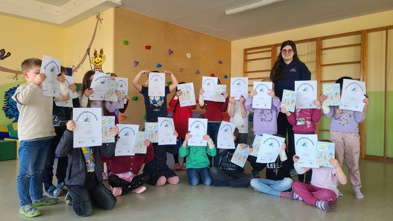 Die Jungen und Mädchen sind hoch motiviert und freuen sich über ihre neuen Kenntnisse. Zum Schluss gab es Urkunden und ein Malbuch für die erfolgreichen Absolventen des Pflasterführerscheins! Herzlichen Glückwunsch!