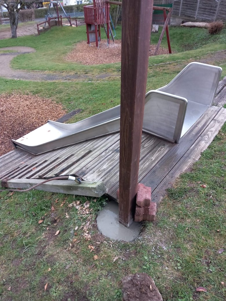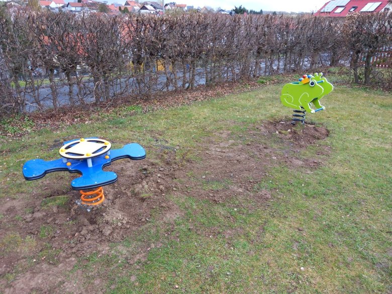 Der Spielplatz verfügt nun über neue Spielgeräte, darunter neue Wipptiere. Außerdem wurden Bänke und Tische repariert und mit einem neuen Anstrich versehen. Die Rutsche sowie ihr Umfeld wurden instandgesetzt. Auch der Unterbau des Sonnenschutzes wurde repariert und gestrichen. Darüber hinaus wurde neuer Fallschutz aufgebracht.