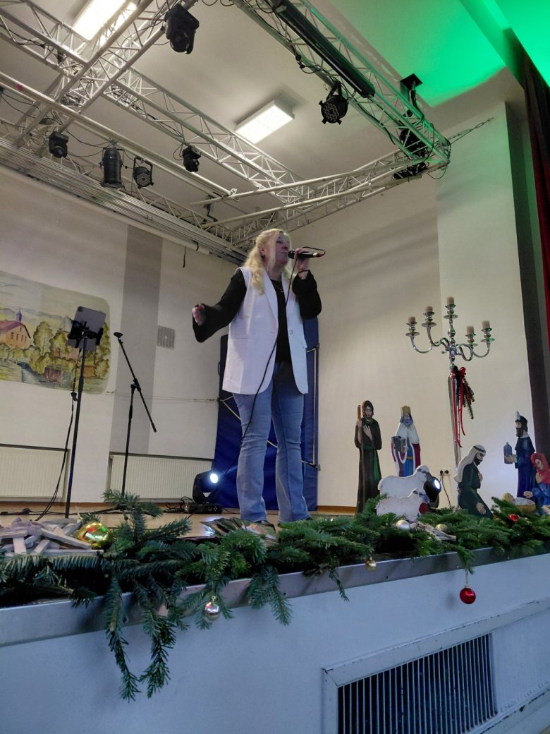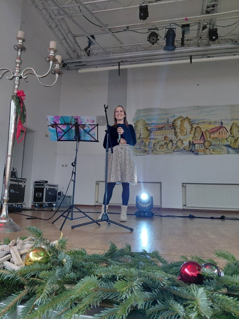 Nach dem Kaffeetrinken erfüllte Dannyjune Smith den Saal mit weihnachtlichen Liedern, regte zum Mitsingen an und trug so maßgeblich zur festlichen Stimmung bei.