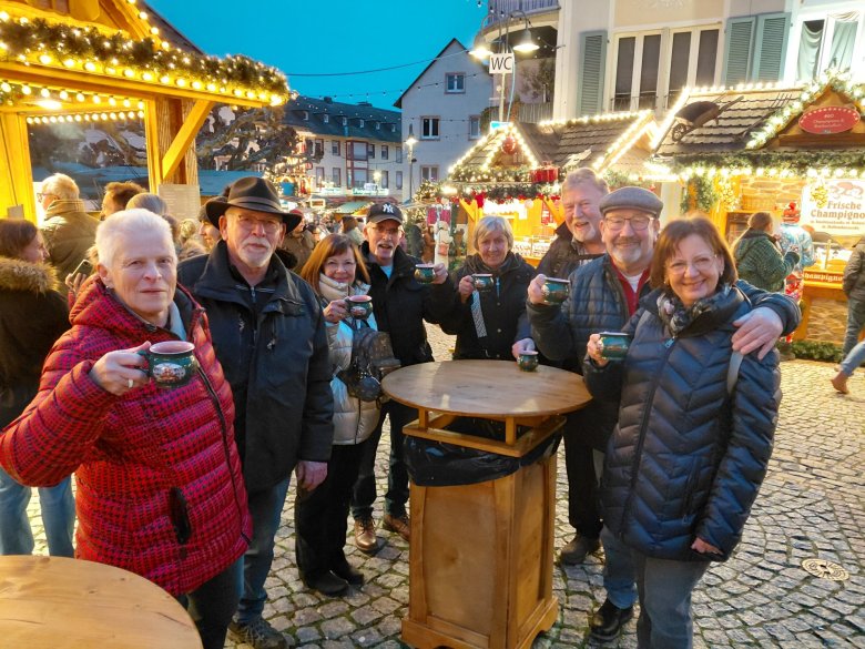 Gegen 16.30 Uhr legte das Schiff in Rüdesheim an. Dort wartete bereits der stimmungsvolle Weihnachtsmarkt auf die Gruppe. Die Teilnehmerinnen und Teilnehmer schlenderten zwischen festlich geschmückten Ständen, probierten regionale Spezialitäten und nutzten die Zeit, um kleine Geschenke zu erwerben. Viele äußerten ihre Freude über das vielseitige Programm und die angenehme Gemeinschaft. Gegen 20.30 Uhr kehrte die Reisegruppe wieder nach Brachttal zurück – müde, aber rundum zufrieden. „Es war ein sehr gelungener Ausflug“, lautete das einhellige Fazit der Teilnehmenden. Die Gemeinde kündigte bereits an, auch im kommenden Jahr wieder einen gemeinsamen Seniorenausflug zu organisieren.