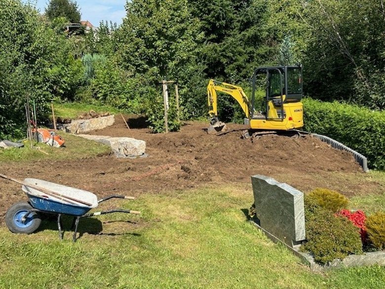 Zusätzlich wurde ein neuer Zuweg zur Bestattungsanlage vorbereitet, um den Zugang für die Besucher zu erleichtern. Dies verbessert die Erreichbarkeit der Anlage und sorgt für einen komfortablen Zugang.