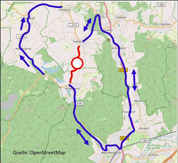 Zusätzlich ist für den Verkehr aus Richtung Gründau kommend eine Alternativstrecke über Waldensberg und Leisewald beschildert. Für die Feuerwehr und den Rettungsdienst wurden gesonderte Regelungen getroffen.