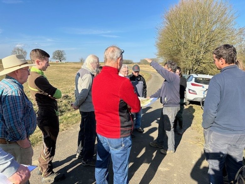 Wie am Informationsabend am 10.10.2024 im Dorfgemeinschaftshaus (DGH) Udenhain angekündigt, fand am 07.03.2025 eine praktische Vorführung zur Bodenkartierung im Wasserschutzgebiet „Stockbornquelle“ statt. Interessierte Bürgerinnen und Bürger hatten die Gelegenheit, sich vor Ort über die Vorgehensweise bei der Erfassung der Nitrataustragsgefährdung zu informieren.